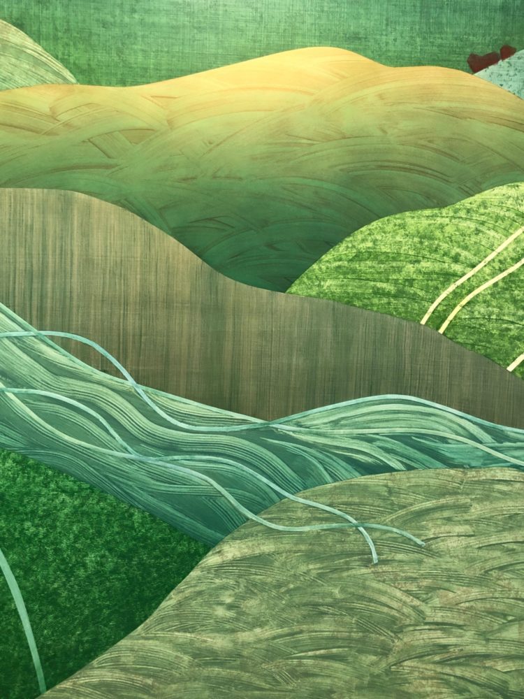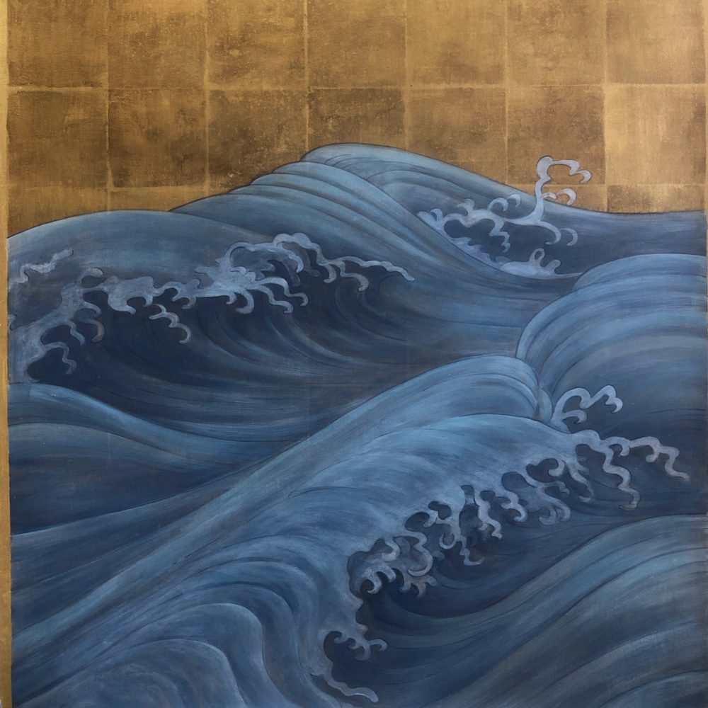 サロンで展示した作品。上部は金箔のトロンプルイユ、下は波。