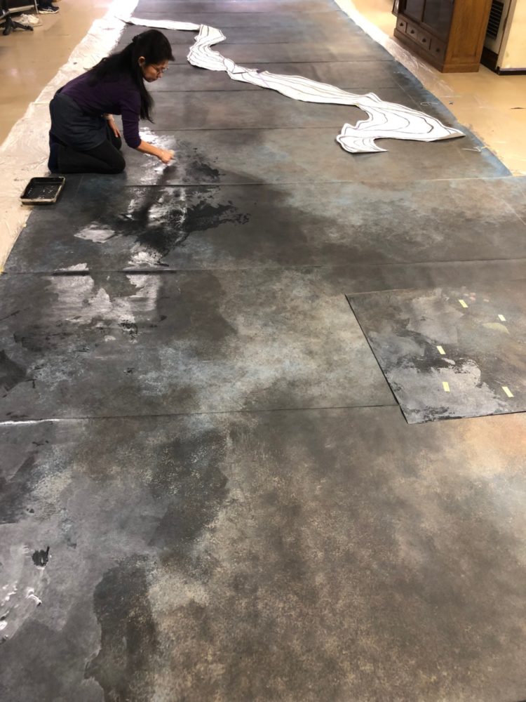 女子美での制作風景。このヒーリングアートを順天堂大学練馬病院のエレベーターホールに納めた。 写真提供/女子美術大学