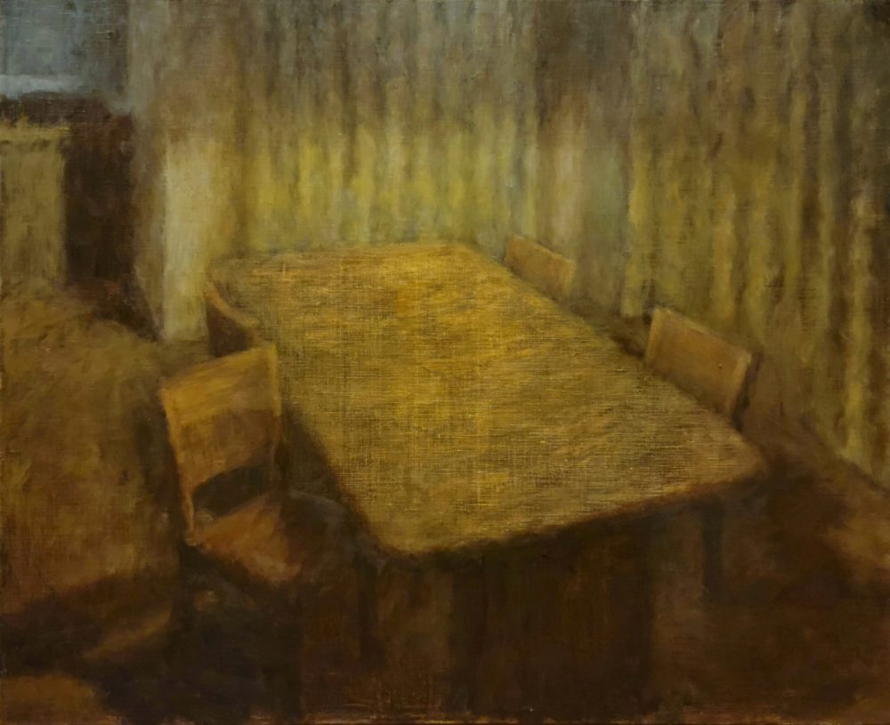 私の作品のモチーフとなるものは、つねに自分にとって思い入れのある場所や室内の記憶そのものです。その記憶の集積を、絵の具の積み重ねが可能な、油絵の絵画作品として表現しています。