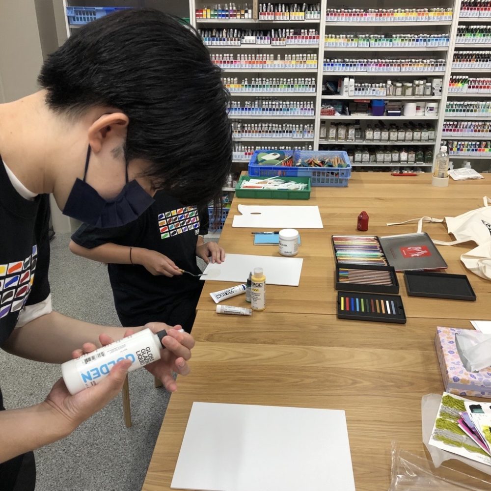 大森さん:新たな絵画素材に対する興味関心があるためです。私は主に油絵具を使った制作を行っていますが、GOLDENのアクリル絵具についての説明を聞き興味を持ちました。アーティストと共同で絵具を開発してきたという、GOLDEN絵具を使い制作してみたいと思いました。