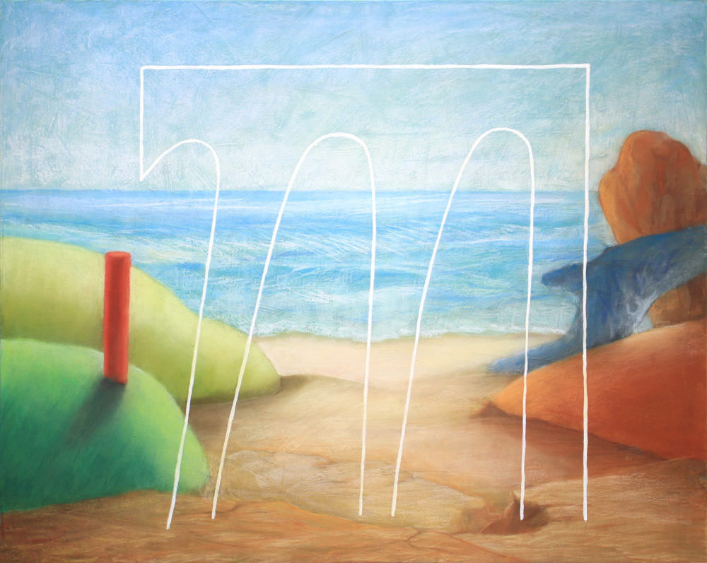 取り組み始めた当初は、まず画面に線を置き、そこから見えてきた形に従って絵を描いていました。今でもそうですが、線や形が現れてくるのを待って絵を見つめ続けます。制作を重ねていくと、浮かびあがってくる形は最終的に風景のようなものとして収束していることに気がつきます。