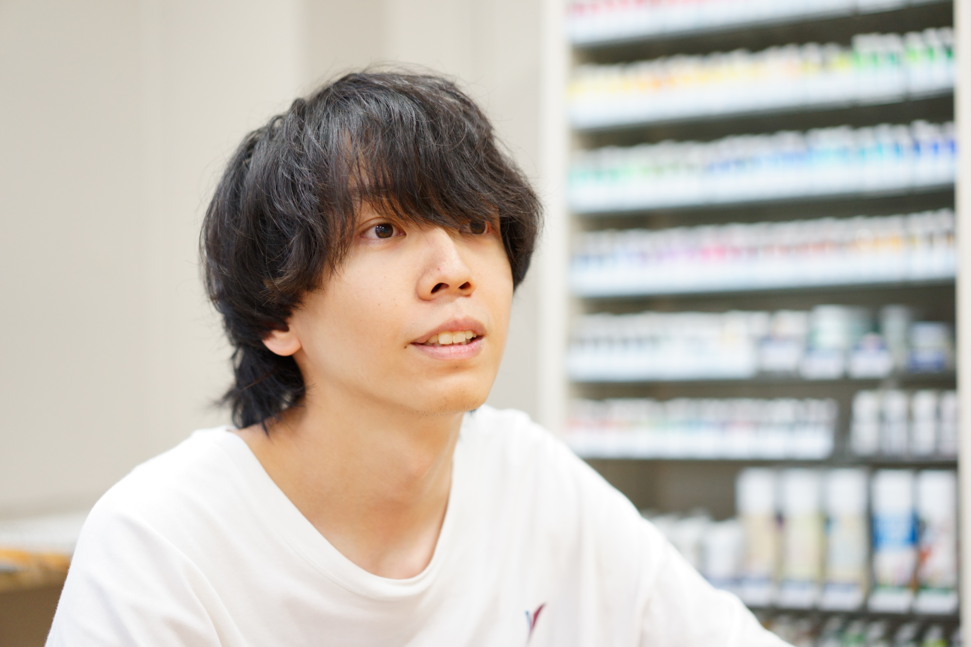 細谷さん:僕もインタフェレンスカラーがめちゃくちゃ気になります。自分の作品はダークトーン寄りのグレーを使うことが多いのですけれど、その上に使ったらどうなるのだろうということが疑問としてあって。あと、ヘビィボディが気になりますね。今回の試し塗りはナイロン筆で描いたのですが、豚毛で描いたらどうなるのだろうなと思います。筆致が強く残ったりするのか気になります。