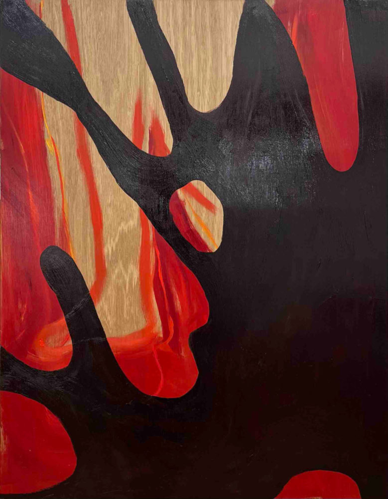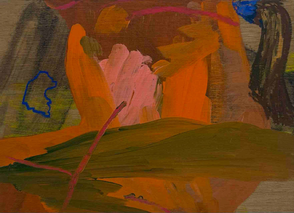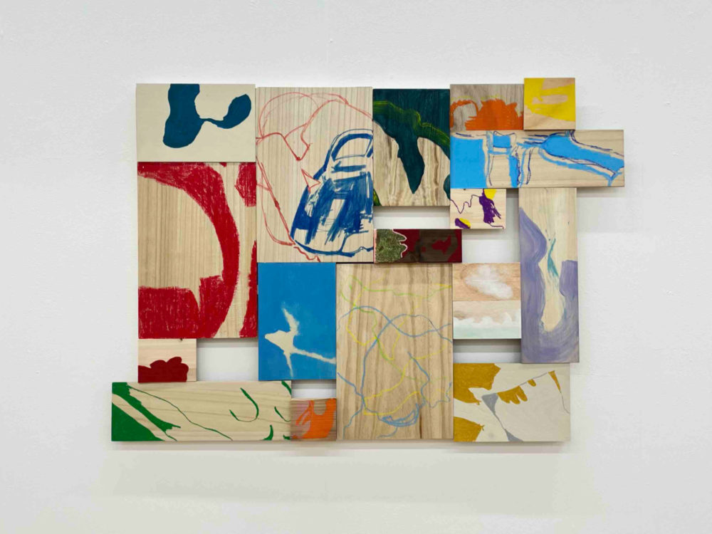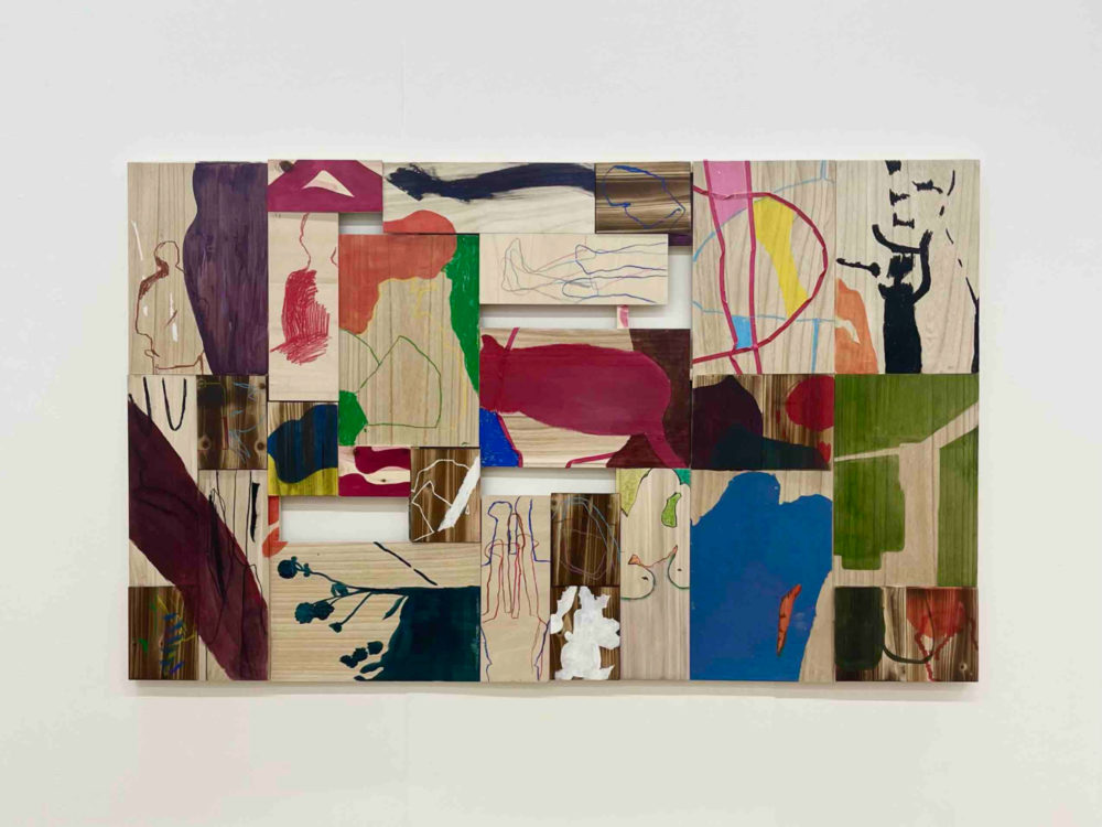 また、絵を描く支持体として木材中心に制作を行っています。木材の木目は、絵具の透明層や厚塗りと交わり合い、画面に複層的な深みを与えます。絵具を薄く塗れば木の文様が浮かび上がり、厚く重ねればその存在は覆い隠される。こうした現象は、私がとらえたい「すきま」の感覚と重なり合います。