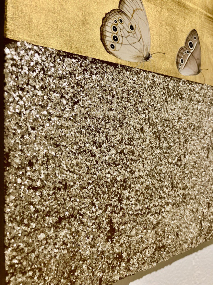 こちらは金箔地とマイカフレークを組み合わせた作品。