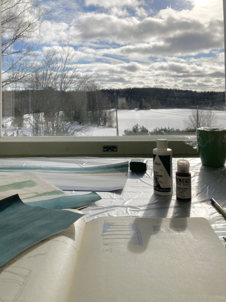 この辺がフィンランドで描いていたドローイングです。向こうで描いたドローイングは、体験が乗っているので写真で見るより鮮明にフィンランドの風景を思い出せます。