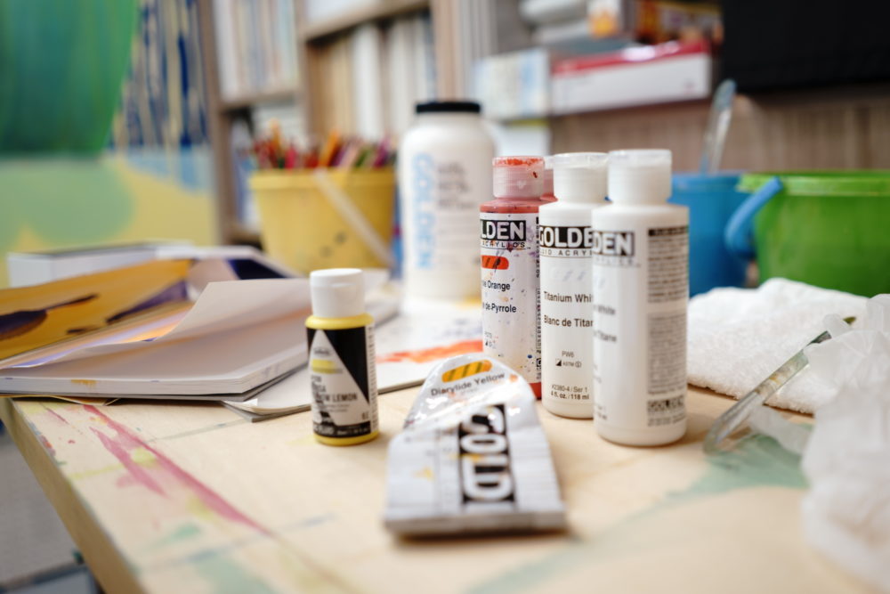 使い心地と色で選んでいます。油絵の具と併用しているときにはヘビィボディでしたが、油絵の具を使う割合が減ってきたら、もう少し軽い絵の具が欲しいなと思い、支持体も今までのものから別のものに変えたタイミングで、もっと伸ばしやすい絵の具が良いということで、フルイドに移行していきました。