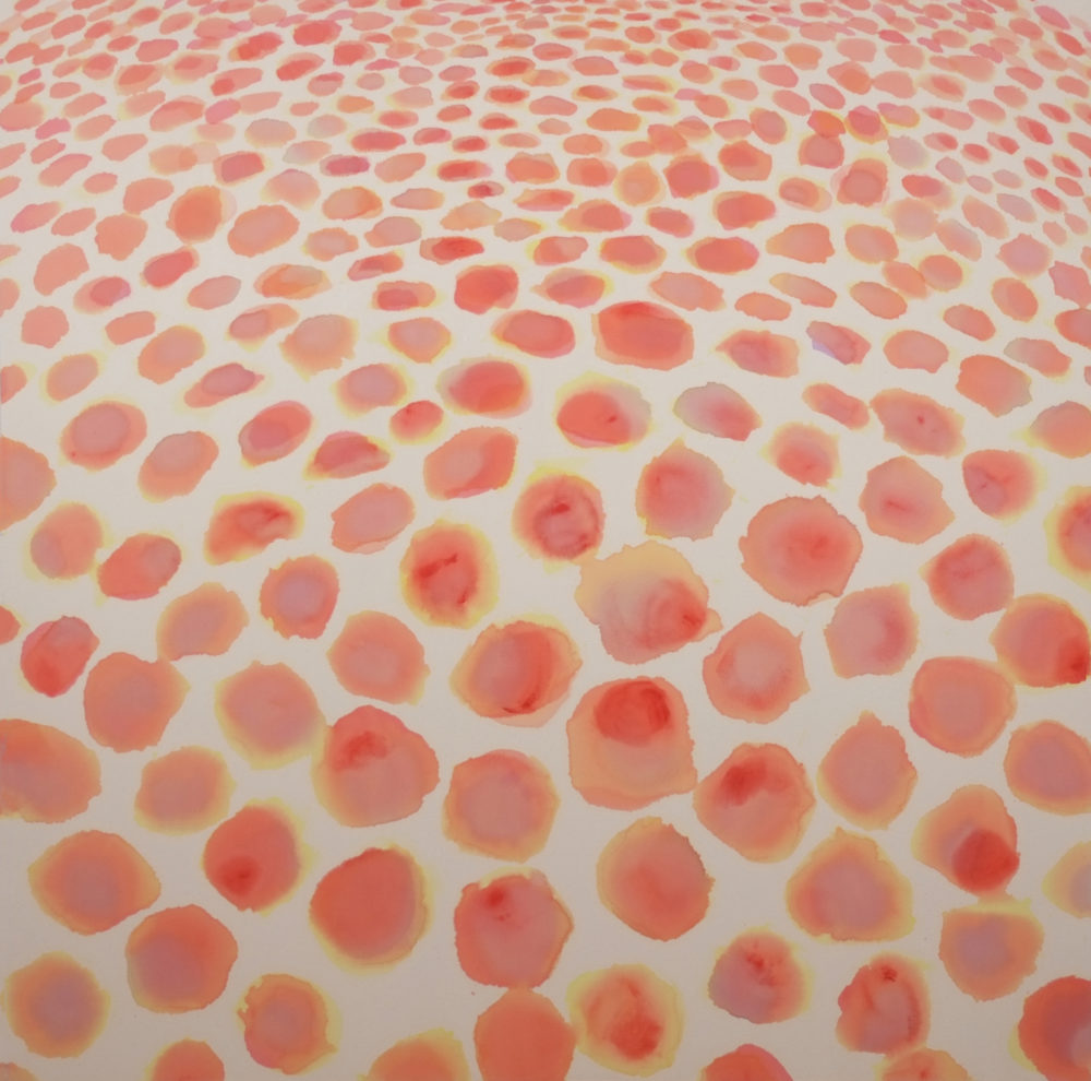 Q:末松さんの作品は、とても鮮やかできれいな色の組み合わせの抽象作品ですが、個人や社会が持つ両極性を、どのように作品に落とし込んでいるのですか?
