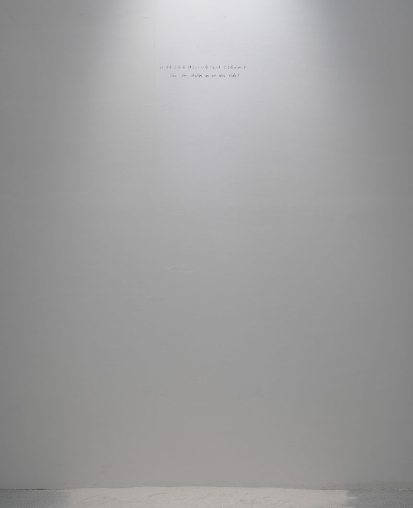 可塑性のある砂を用いることで、自然発生的に出来上がるのに意識せざるを得ない、人間関係の中での境界線や、不可能ではないはずなのに、誰もがそれを壊すことなく温存し続ける慣習や規則を象徴的に表現できると考え、会場に設置しました。