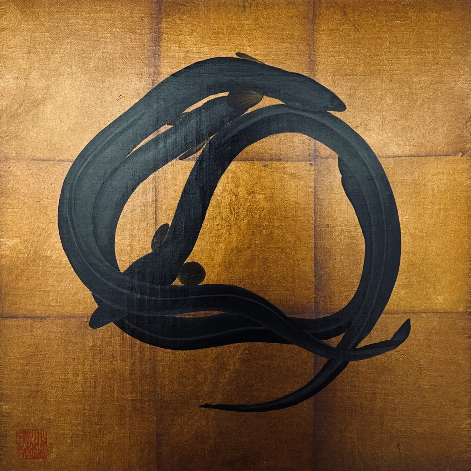 うなぎ/golden acrylic,silver leaf on canvas/S4
