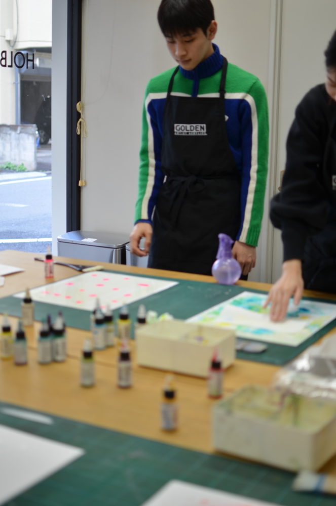 大森さん:ゴールデンのいいところって、乾くのが早いっていうところと、絵具の種類やメディウムもたくさんあって、いろんな手法を試せるというところだと思います。トライ&エラーが何回でも出来るというか。