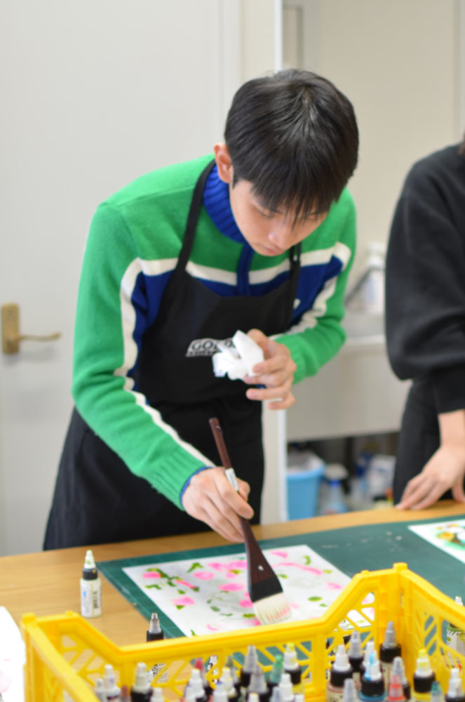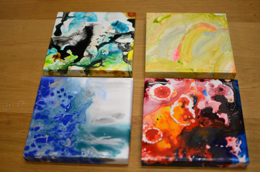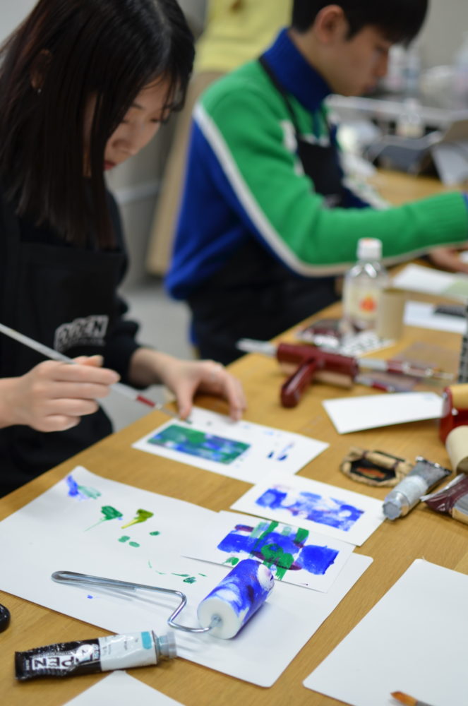 その後はハイフローを使用したドロッピングアートや、OPENを使ったジェルプレートプリントに挑戦。とても盛り上がった交流会でした。