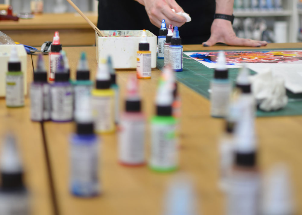 あとは、液状の絵具(フルイド)を使用してみて、液状なのに濃度が濃いので水を加えたり濃度調整をしたりする手間が必要なかった。粘度の調節もしやすくって。そういう意味でも時短で制作できました。卒業制作にも使用していて、すごくやり易かったです。